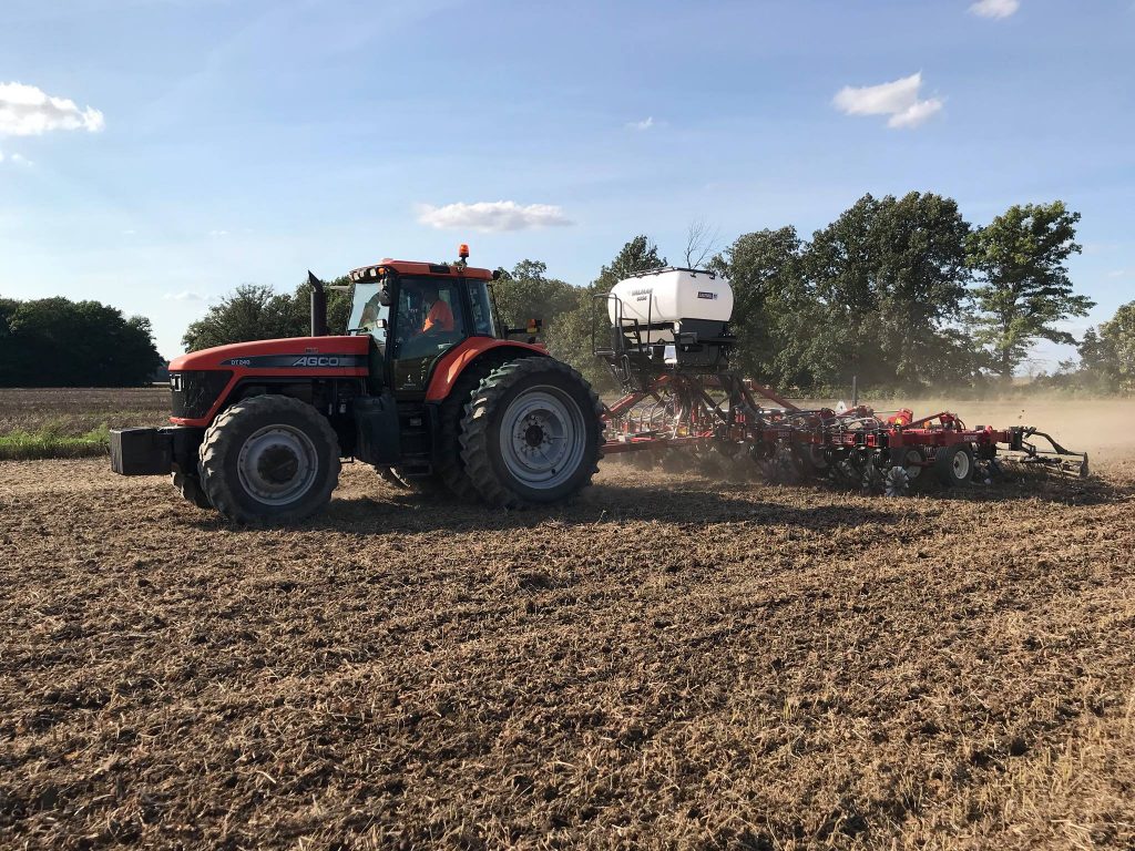 Using a vertical tillage tool with a Valmar seeder, Stateler Family Farms seeds a four-way mix of cereal rye, oats, radish and buckwheat to help hold nutrients in the soil for next year's corn crop.